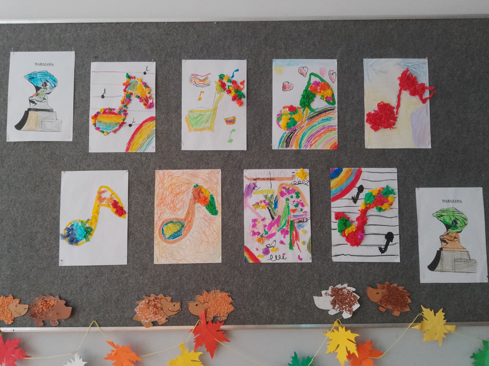 Dzień Chopinowski - dziś z okazji rocznicy śmierci Fryderyka Chopina oraz zakończenia wielkiego międzynarodowego Konkursu Chopinowskiego dzieci w świetlicy obejrzały film edukacyjny o Fryderyku Chopinie, słuchały informacji nt. jego utworów i improwizowały tanecznie przepiękne mazurki, walce, ronda i polonezy, składały puzzle chopinowskie. Wcześniej dzieci wykonały przepiękne pracę "nutkowe" i kolorowały obrazki, związane z Chopinem.
