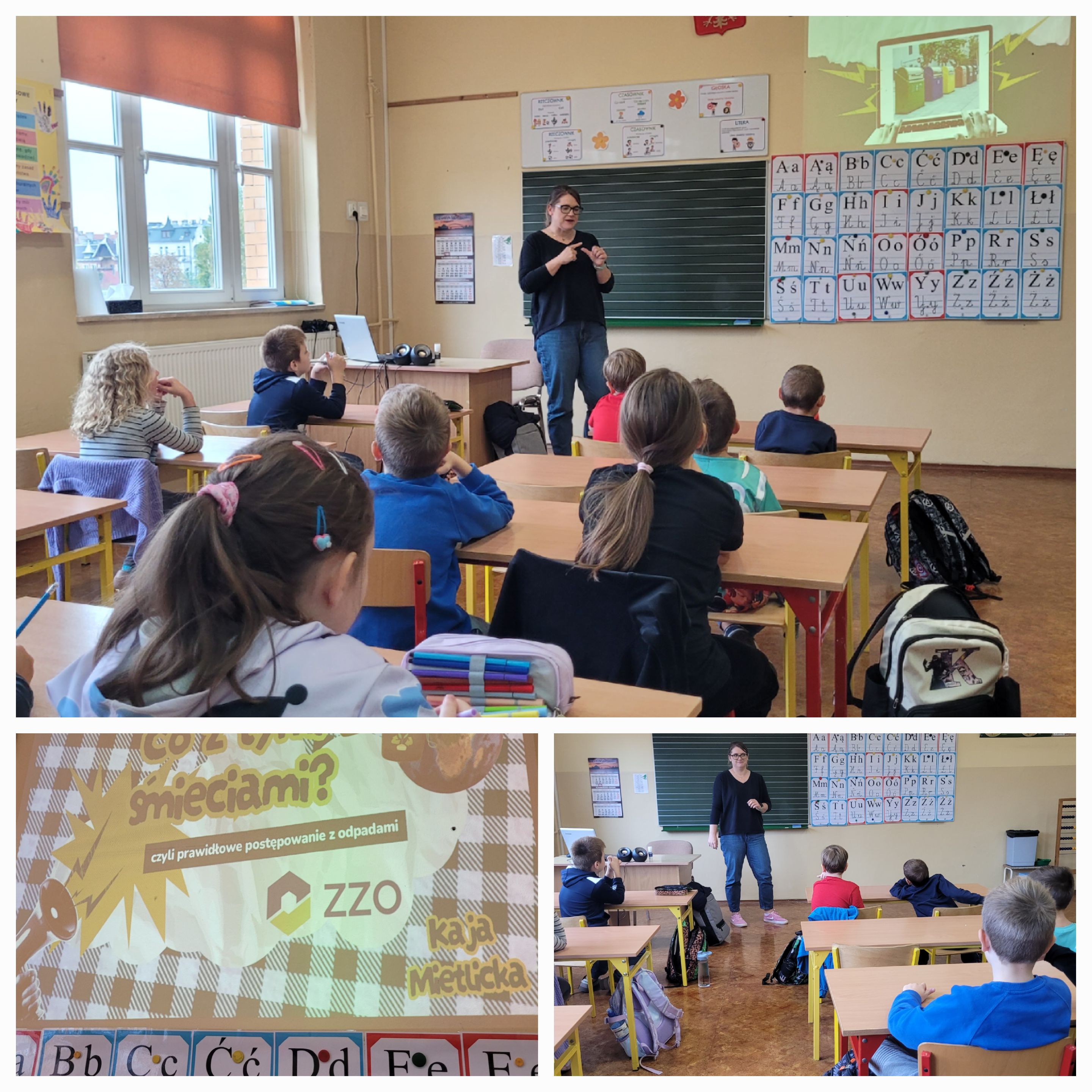 Uczniowie klas 1-3 spotkali się z Panią z Zakładu Zagospodarowania Odpadów w Poznaniu.