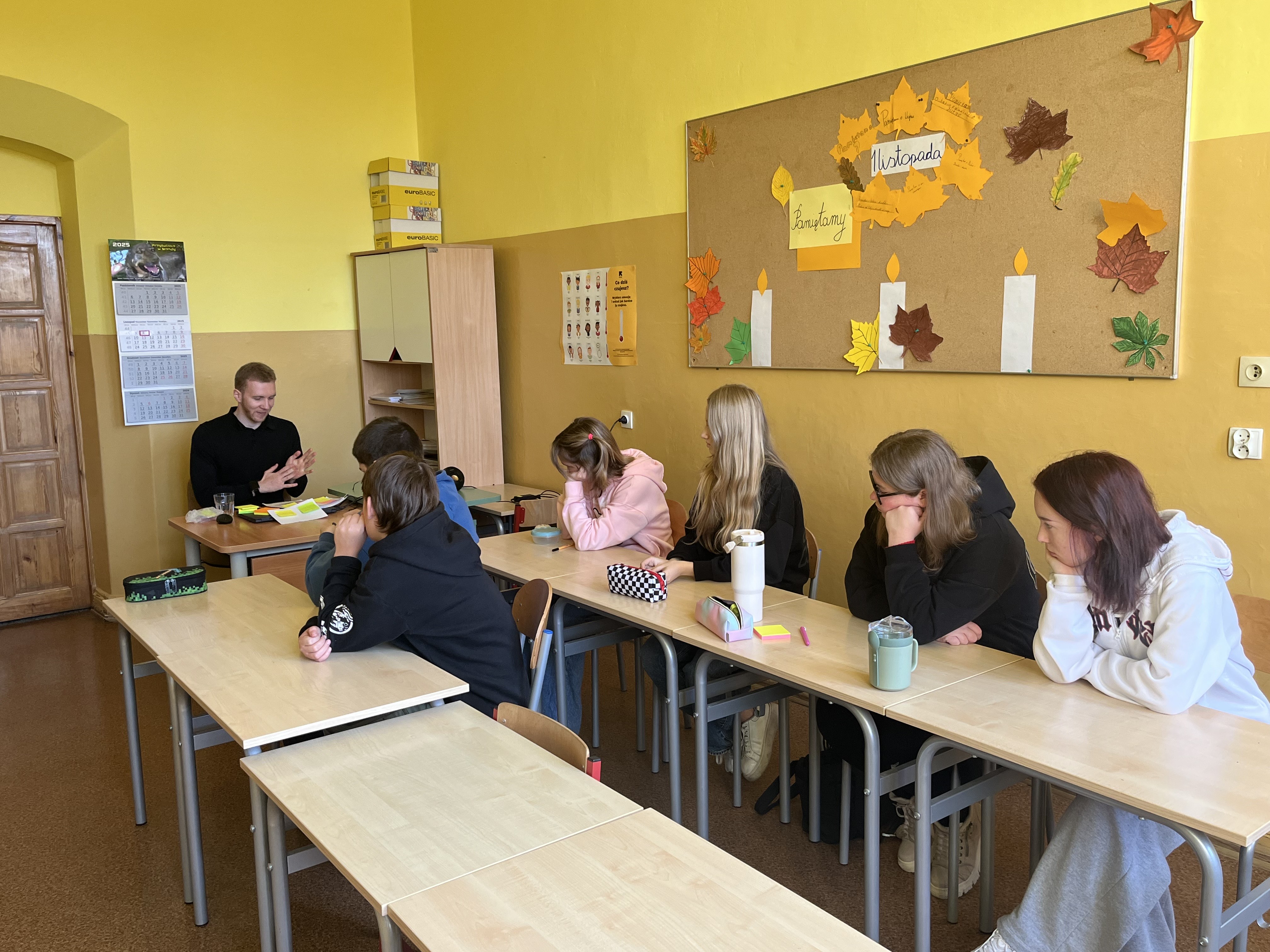 W tym tygodniu klasy siódme brały udział w warsztatach profilaktycznych przeprowadzonych przez przedstawiciela Poradni Psychologiczno- Pedagogicznej nr 2 w Poznaniu - pana Aleksandra Szedlera. Zajęcia pt. „Przyczyny, skutki, konsekwencje” polegały na omówieniu wiedzy i poglądów uczniów na temat przyczyn i skutków oraz konsekwencji korzystania z substancji psychoaktywnych. Dodatkowo uczniom zostały wskazane konstruktywne formy realizacji ich potrzeb i oczekiwań życiowych- bez sięgania po substancje psychoaktywne. Dzięki warsztatom uczniowie mają większą gotowość do przyjmowania postawy charakteryzującej się rezygnowaniem z zażywania środków psychoaktywnych.