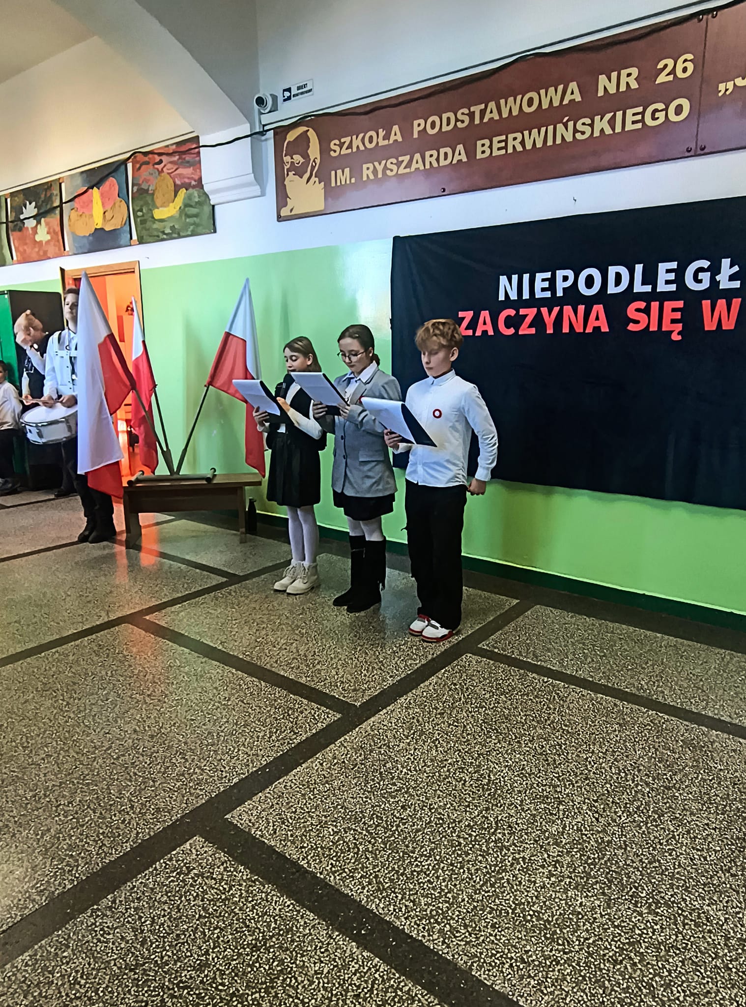 Dziś w naszej szkole odbył się uroczysty apel upamiętniający 107. rocznicę odzyskania przez Polskę niepodległości.