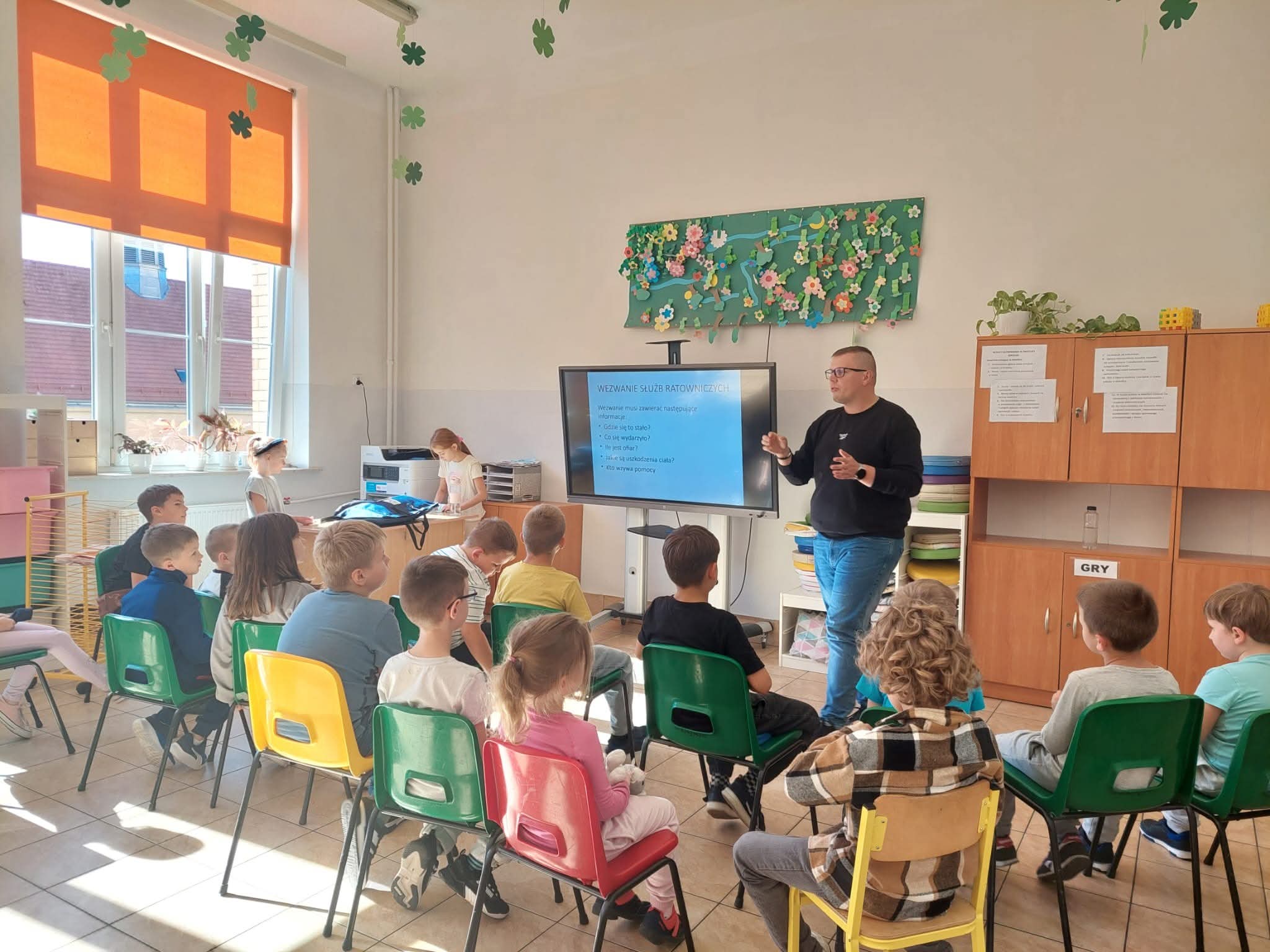 i zdrowo z małpką Iwoną". Zaprosiliśmy eksperta- pana Damiana, który opowiedział nam jak udzielić Pierwszej Pomocy. Dowiedzieliśmy się wielu cennych rzeczy.